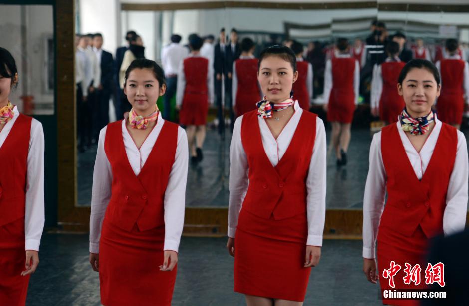 Students from Nanhang Jincheng College take part in etiquette personnel training courses in Nanjing, capital of eastern China's Jiangsu Province, Nov. 28, 2014.(Photo Source: chinanews.com)