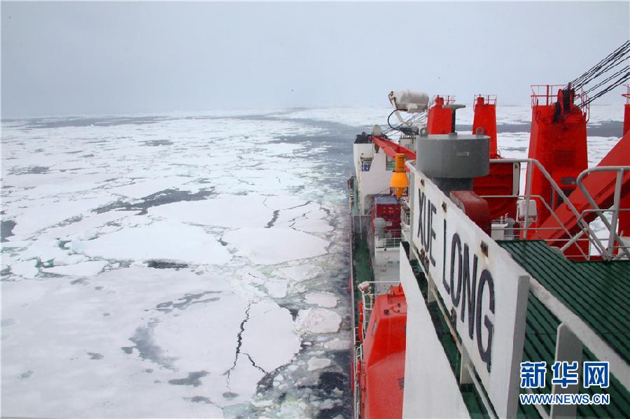 Xuelong sails in floating ice zone on expedition to Antarctica