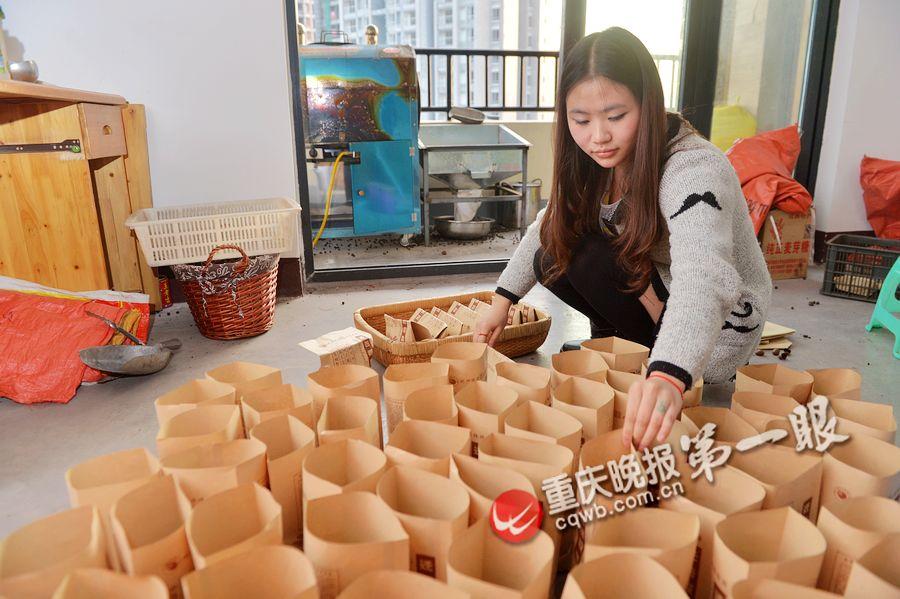 Liu packs the chestnuts. (Photo/Chongqing Evening News)