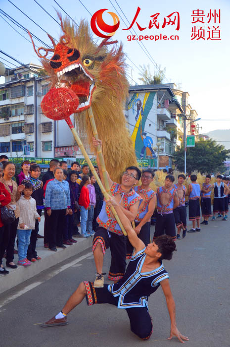 Nearly 10,000 Buyi people (an ethnic group living in south China) in national costumes danced together in Ceheng county, southwest China’s Guizhou province on Nov. 29, 2014. A certifier from the Guinness World Record granted the certificate “Buyi bamboo drum dance and Zhuanchang dance Guinness world record” to this dance after the performance. (Photo source: gz.people.cn)