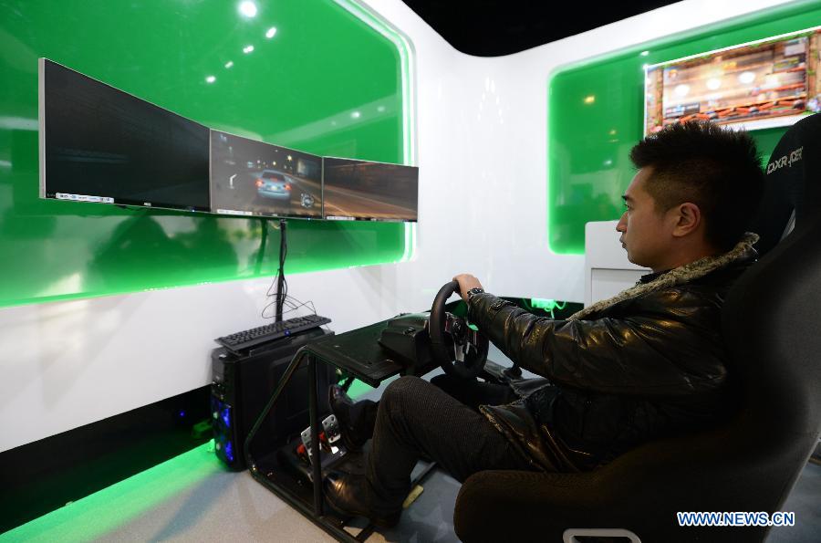 A man plays video games at the Microsoft Game Innovation Center in Dachang Hui Autonomous County, north China's Hebei Province, Dec. 2, 2014. The center which opened on Tuesday is the second incubation base of game innovation founded by Microsoft Corp in China. (Xinhua/Wang Xiao)