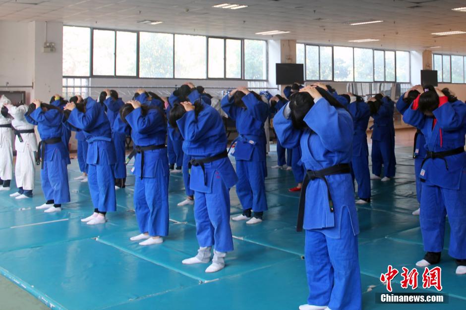 College girls in Zhengzhou University take women's self-defense training. (CNS/Ma Yiheng)