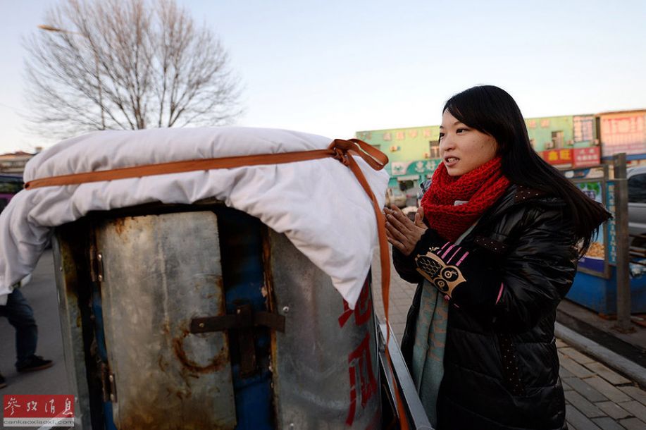 Wang Yan, 22, used to be a nurse in a private clinic in Jinan, east China’s Shandong province. Unfortunately her brother got leukemia and the treatment would cost a large sum of money. To make more money, she decided to sell sweet potatoes in the street. She gets up at 5 a.m. every day to roast sweet potatoes and goes out to peddle them in the street at 8 a.m. She can earn 180-200 yuan a day.(Photo/Cankaoxiaoxi.com)