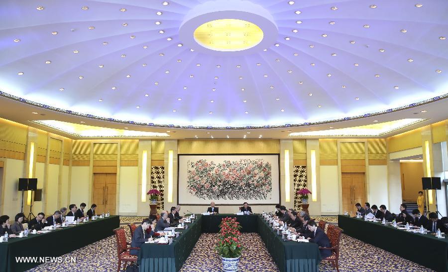 | The plenary session of the Fifth 21st Century Committee for China-Japan Friendship is held in Beijing, capital of China, Dec. 3, 2014. The top Chinese member of the committee Tang Jiaxuan and his Japanese counterpart Taizo Nishimuro attended the meeting held on Dec. 3 and Dec. 4. (Xinhua/Ding Lin) |
