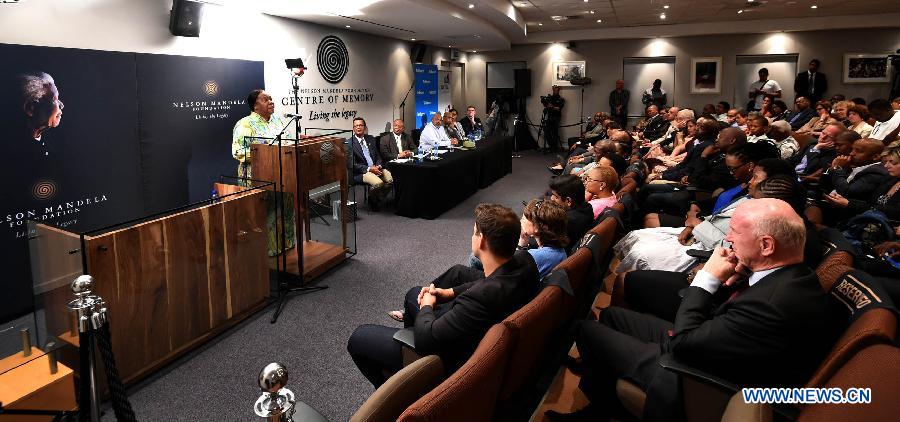 South Africa's Science and Technology Minister Naledi Pandor speaks at the opening ceremony of the Nelson Mandela Condolence Books Exhibition at the Nelson Mandela Centre of Memory of Johannesburg, South Africa, on Dec. 4, 2014. The Nelson Mandela Condolence Books Exhibition was held Thursday to mark the upcoming first anniversary of the late South Africa's President Nelson Mandela's passing which falls on Dec. 5, 2014. A total of 4850 condolence books which were brought by South Africa's embassies all over the world and more than 100 domestic condolence books are scheduled displayed during the exhibition. (Xinhua/DOC/Kopano Tlape)