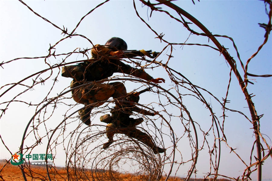 New soldiers of a brigade of Nanjing Military region conduct drills in November 2014. The drill is intended to build up the combat ability and the bodies of the new soldiers. (Photo/www.81.cn)