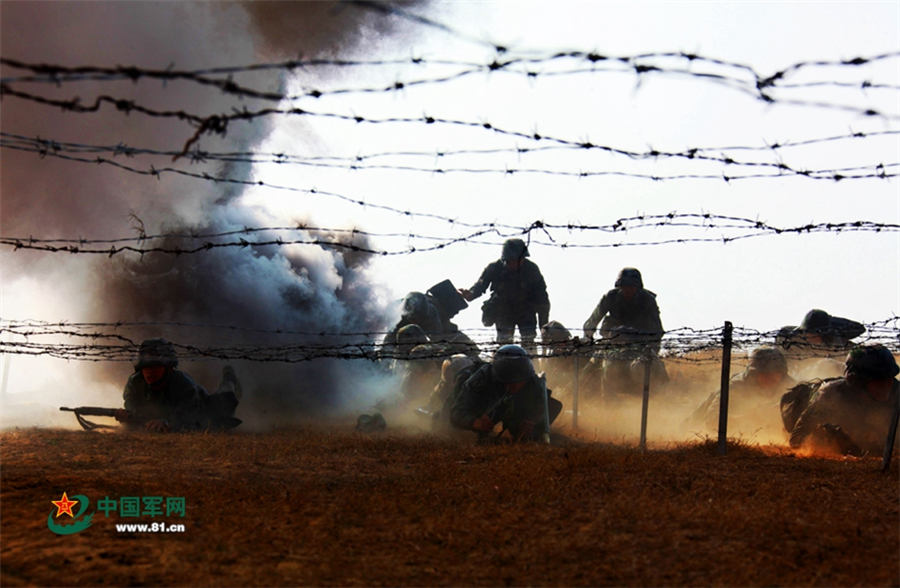 New soldiers of a brigade of Nanjing Military region conduct drills in November 2014. The drill is intended to build up the combat ability and the bodies of the new soldiers. (Photo/www.81.cn)