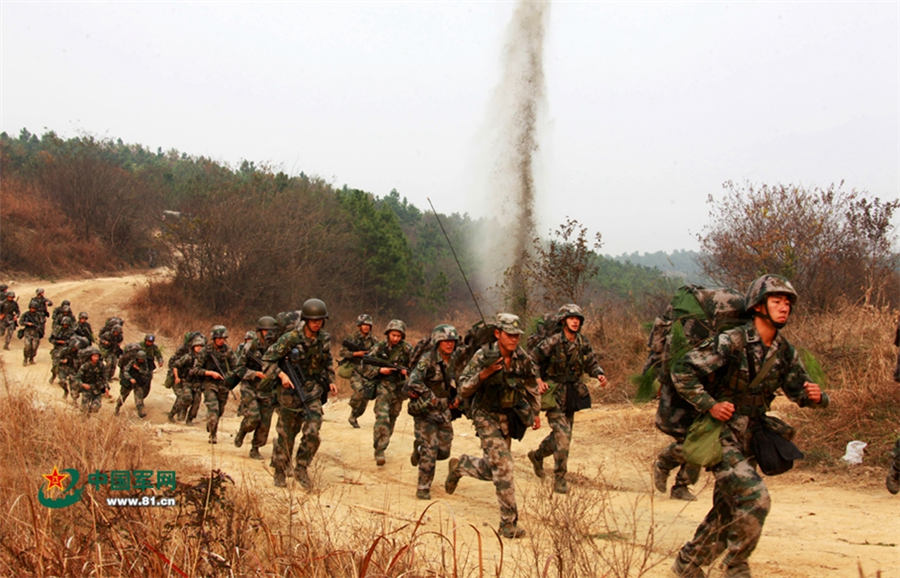 New soldiers of a brigade of Nanjing Military region conduct drills in November 2014. The drill is intended to build up the combat ability and the bodies of the new soldiers. (Photo/www.81.cn)