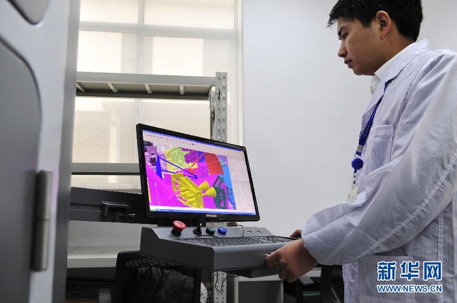 Wang Lianfeng, senior engineer at Shanghai Academy of Spaceflight Technology operates an aerospace 3D printer on Dec. 7, 2014. The academy has successfully developed a multi- laser metal 3D printer. In the future, astronauts can print all items with just one 3D printer in space. (Xinhua/Zhang Jiansong)