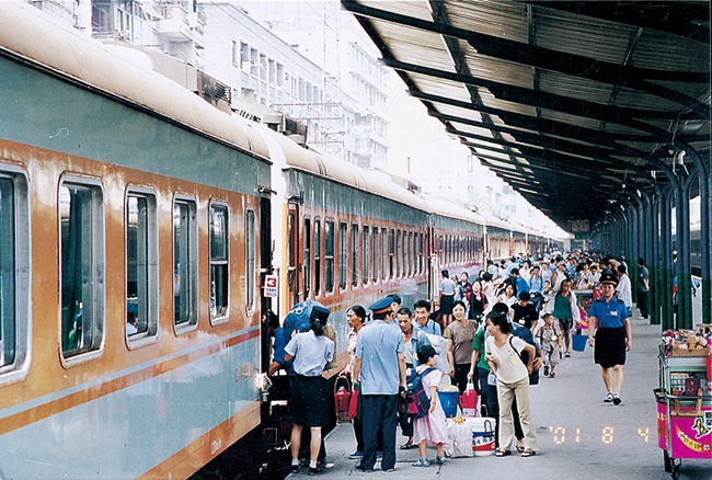 Relocated residents board a train in Zhongxian county. (Photo provided)