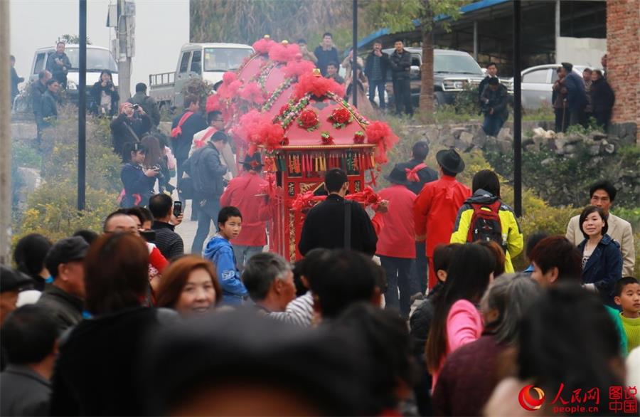 Six pairs of bride and grooms from Shanghai hold a traditional wedding ceremony with local characteristics. (Photo/People.cn)