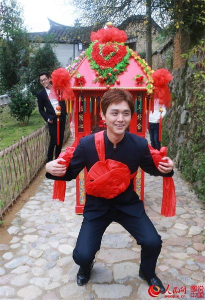 Six pairs of bride and grooms from Shanghai hold a traditional wedding ceremony with local characteristics. (Photo/People.cn)