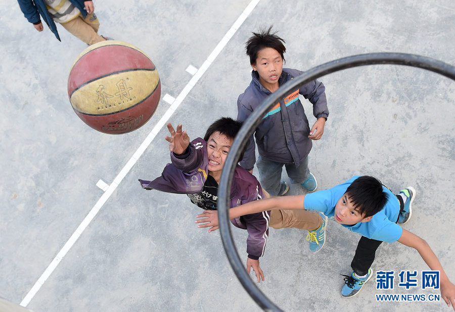 Students play basketball on the playground in a village in Dahua Yao Autonomous County in south China's Guangxi on Dec. 8, 2014. (Xinhua News Agency/Zhang Ailin)