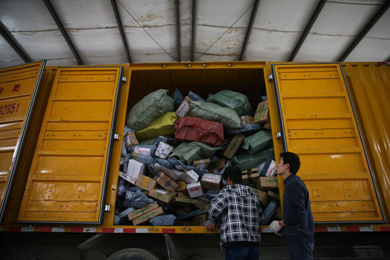 A truck filled with packages is ready to unload(Photo/People.cn)