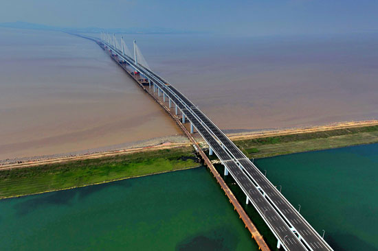 | Jiaxing-Shaoxing cross-sea bridge completed on June 17, 2013.(Photo/People.cn) |