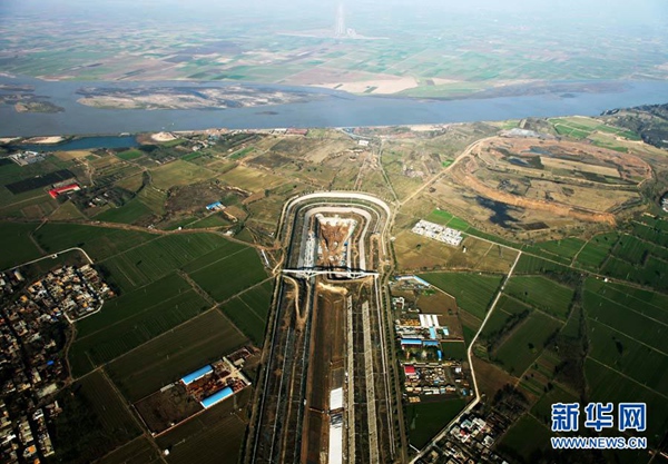 | As the throat of the middle route of south-north water transfer project, the Chuanhuang tunnel across the Yellow River is the widest and deepest tunnel in China. (Photo/ Xinhua) |