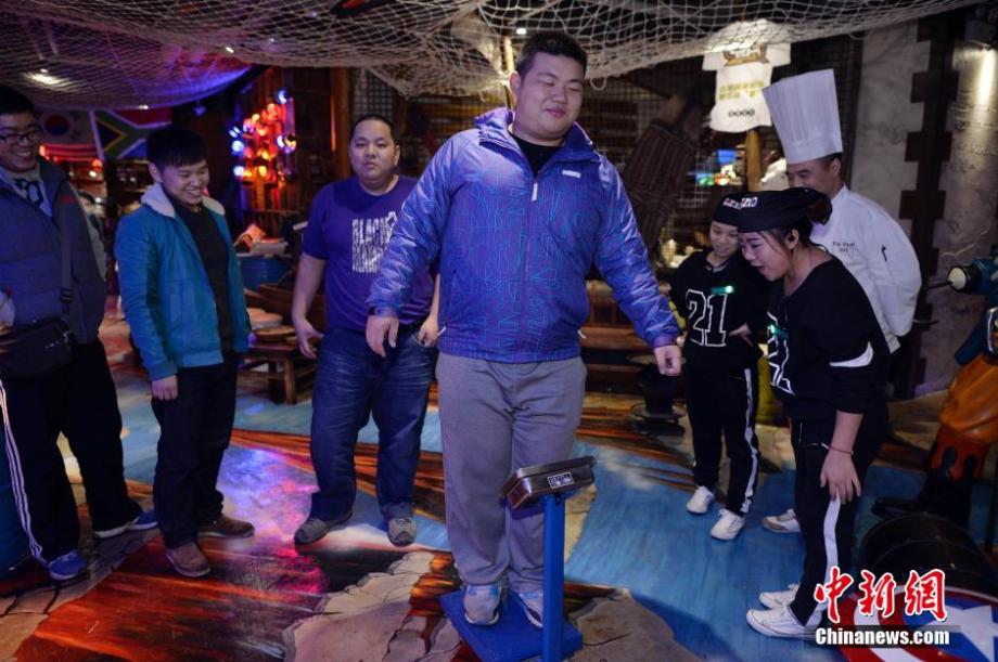 Good news: men weighing over 140 kilograms and women weighing less than 35 kilograms can enjoy delicacy for free in a new restaurant in southwest China's Chongqing city. It also gives discounts to customers on the basis of their body weight.