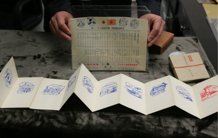 Liu Lei shows the memorial seals of the Japanese army invading cities in China during 1937. (People's Daily Online/Han Shasha)