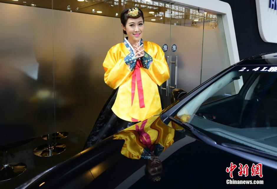 A model presents at the 10th international car exhibition in Changsha, central China's Hunan province on Dec. 11, 2014. The exhibition has attracted thousands of visitors. (CNS/Yang Huafeng)