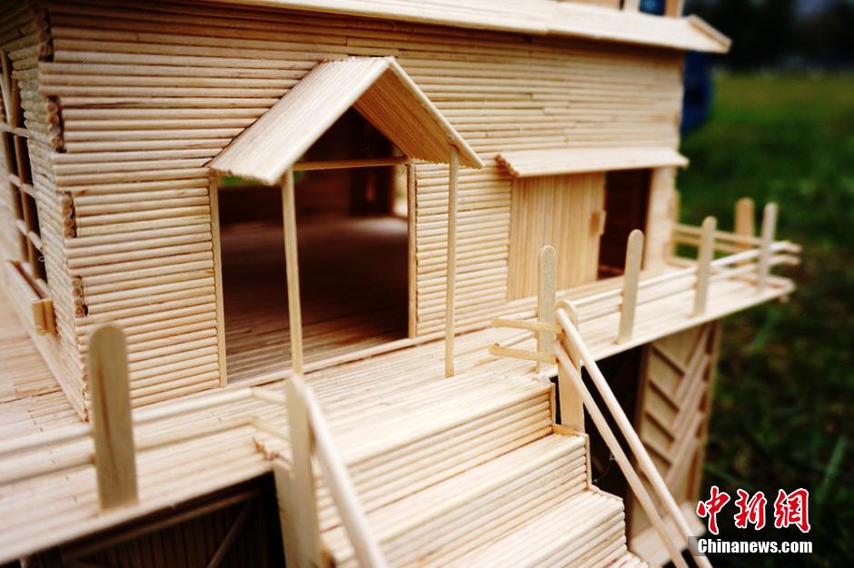 College students build a villa with 4,000 sticks (10)