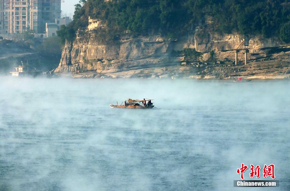 Mist shrouds the Yangtze River in the morning of Dec. 17 in Yichang city, central China's Hubei province. According to meteorological experts, the phenomenon occurred due to the sudden drop of temperature recently which resulted in the water temperature being higher than the air temperature. (CNS/Liu Junfeng)