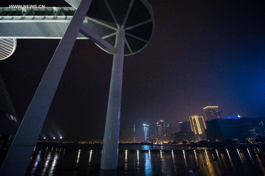 This photo taken on late Dec. 19, 2014 shows the illuminated cityscape of south China's Macao. Macao will mark the 15th anniversary of its return to China on Dec. 20. (Xinhua/Cheong Kam Ka)