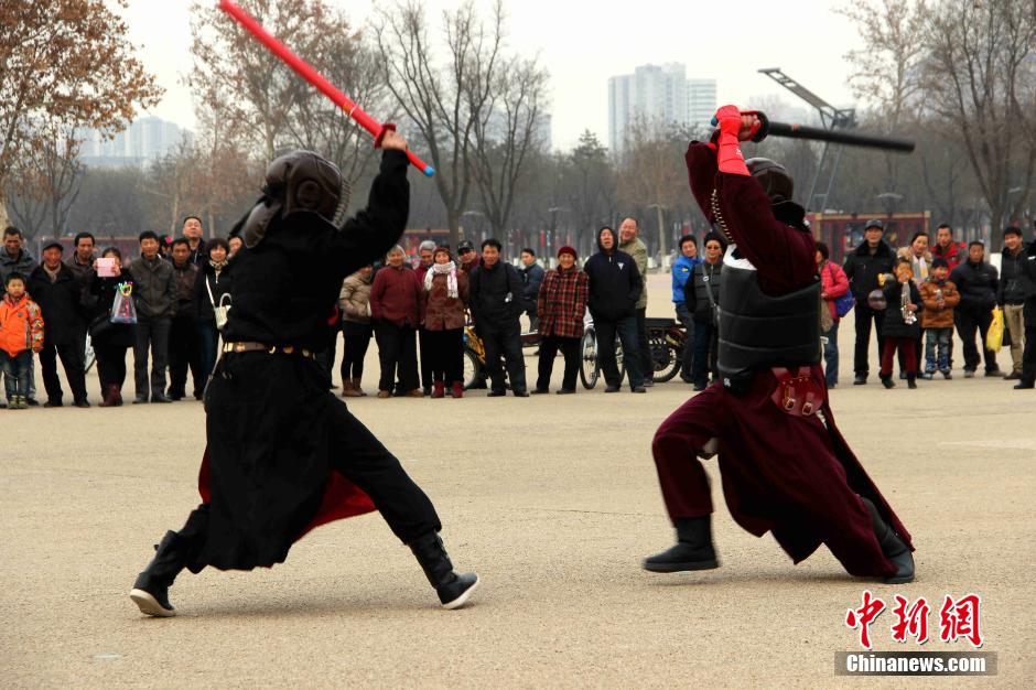 Citizens perform Wushu in a park in Xi'an city, celebrating the coming of midwinter.