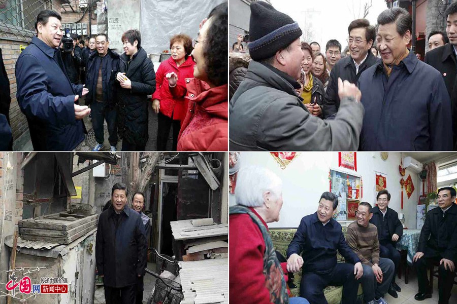 On Feb. 25, 2014, President Xi Jinping visits Yu’er Hutong in Beijing. Growing up in hutong, Xi is familiar with the streets nearby. He asked some questions about the living situation of the residents. (Photo/China.com.cn)
