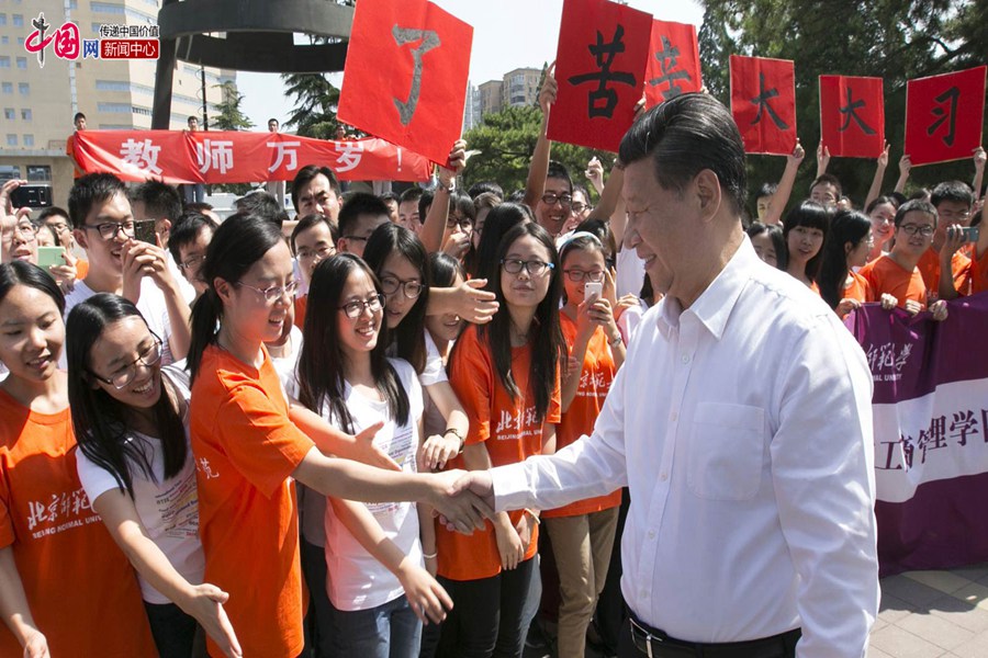 On Sept. 9, 2014, President Xi visits Beijing Normal University before the 30th Teachers' Day. He extended festive greetings to the faculty during the visit. "Can I call you 'Uncle Xi'?" asked Liu Yi, a young teacher from southwest China's Zunyi city. "Of course,"Xi replied. (Photo/China.com.cn)