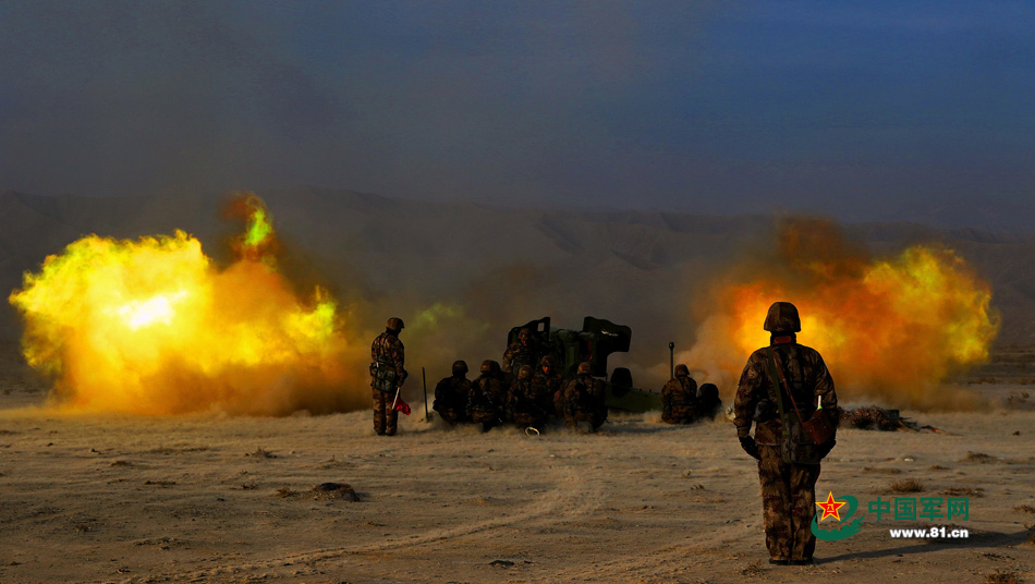 An artillery regiment successfully conducts a winter shooting test in northwest China’s Xinjiang Uygur autonomous region On Dec. 19, 2014. All the targets were hit precisely. (www.81.cn/Geng Yunlong)