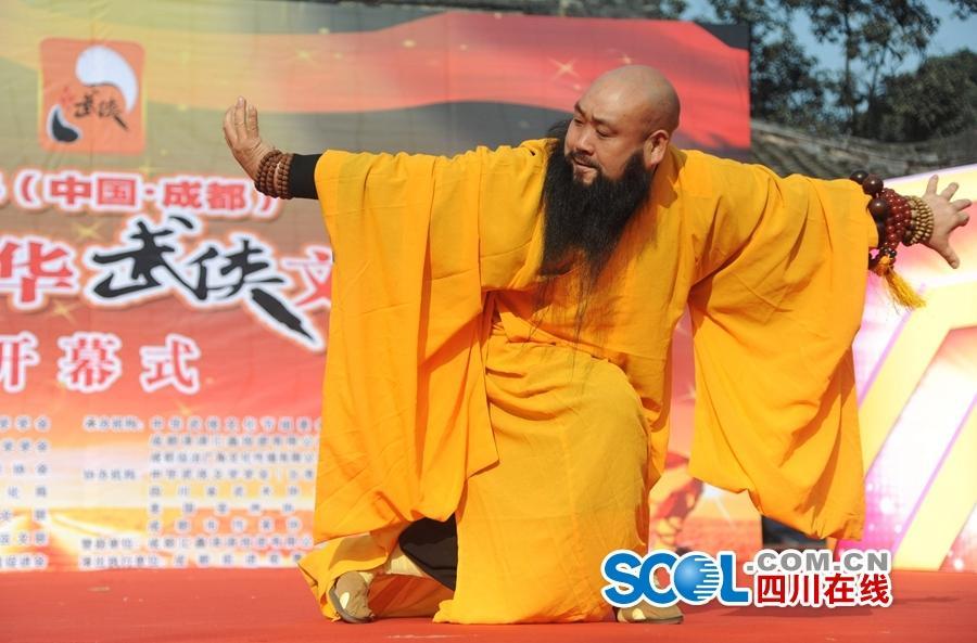 Ten Chinese kung fu masters from different martial art schools including Shaolin, Wudang, Qingcheng, Emei, Laoshan, Kongtong, Taiji and Longquan gather in Chengdu, capital of southwest China's Sichuan province to participate in the Chinese martial arts and cultural festival on Dec. 21, 2014. Their Kong Fu show won warm applause from the spectators. (Photo/SCOL)