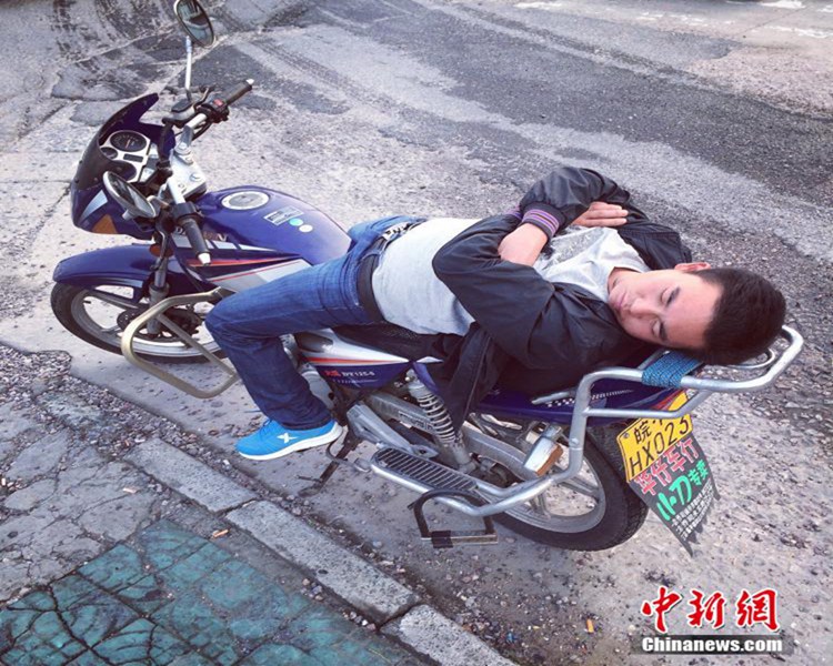 Tired people sleep regardless of time and place. (CNS/Xu Kangping)
