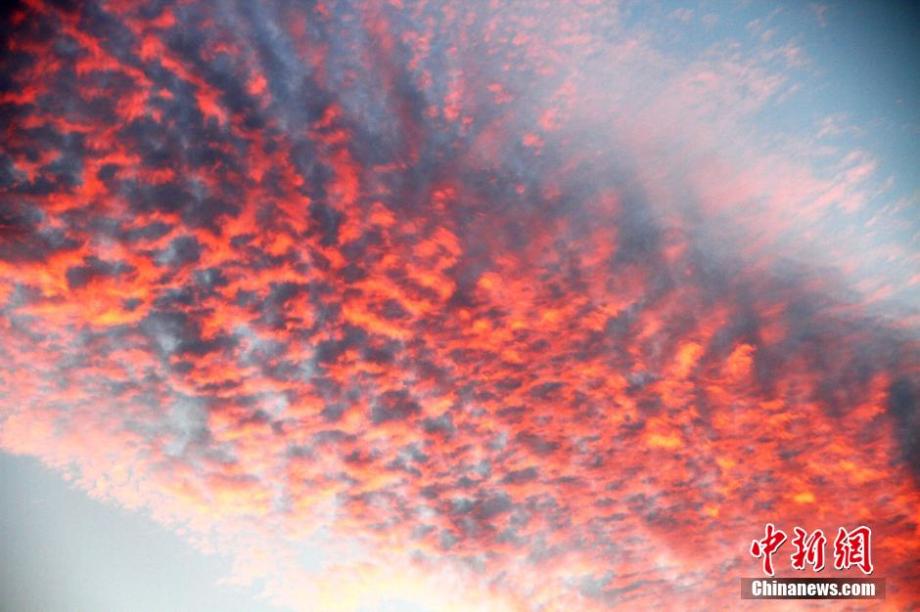Photo shows the scenery of flaming clouds in Suichuan, southeast China's Jiangxi province on Dec. 23, 2014. (Photo/CNS)