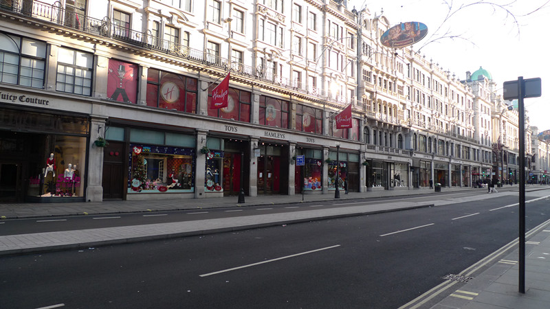Photo taken on Dec.25, 2014 shows the heart of London's famous shopping street. Virtually everything is closed for business on Christmas Day in London. Some places, including banks, remain closed on Boxing Day. (People's Daily Online/Wang Yisan and Yang Bo)