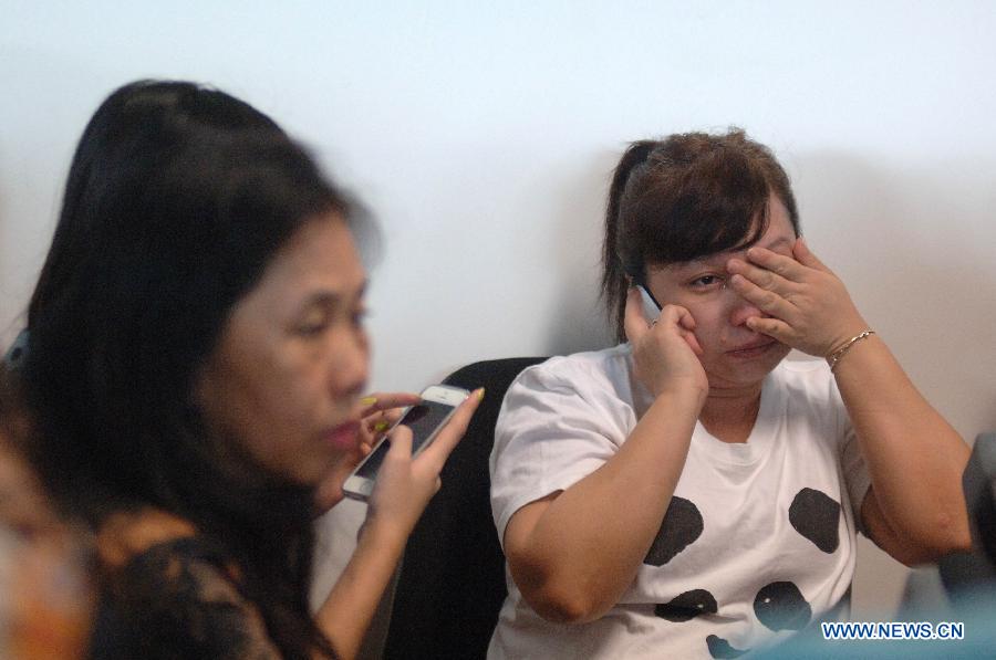 Family members of people onboard missing Malaysian air carrier Air Asia flight QZ8501 gather at Juanda international airport in Surabaya in East Java of Indonesia on Dec. 28, 2014. Air Asia Indonesia has released information about the 162 passengers and crew members onboard Flight QZ8501, which lost contact with the air traffic control Sunday morning. (Xinhua)