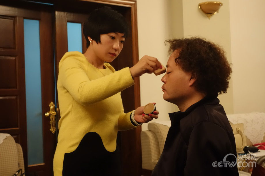 Yang makes the final preparations for his concert. A make-up artist who heard Yang's story volunteered to do him make-up for free.(CCTV.com/Wang XiaoYing)