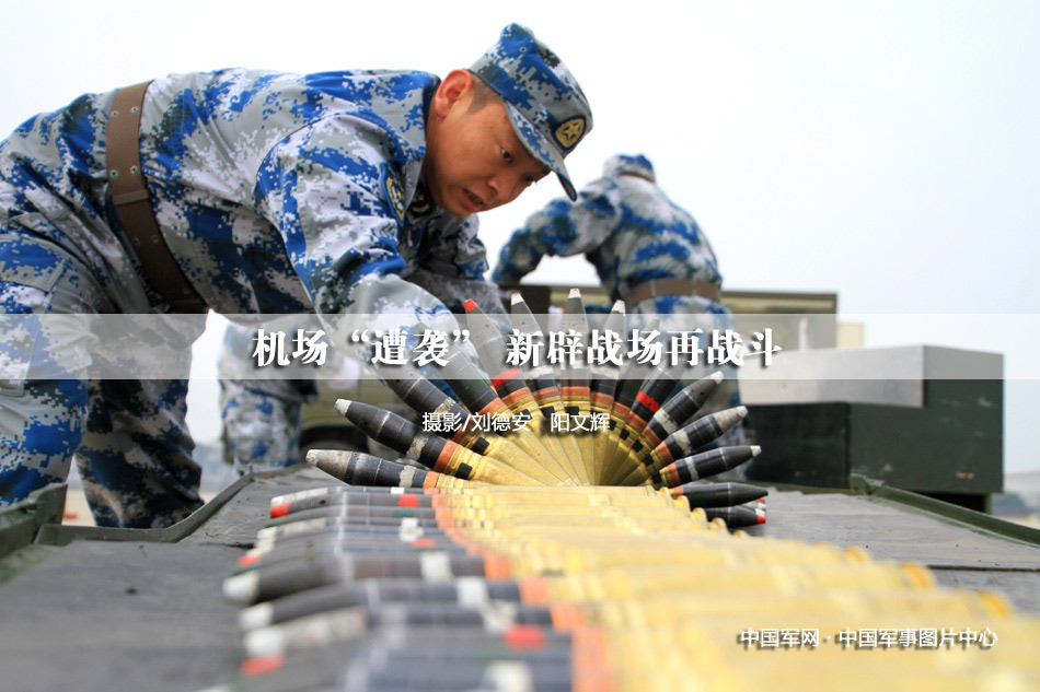 An air force station of Guangzhou military region holds an emergency drill on Dec. 24, 2014. The scenario was that the station was bombed in an air raid and many planes were on fire. Soldiers responded rapidly to defend the airport and resume the normal operation of the station. (Photo source: www.81.cn)