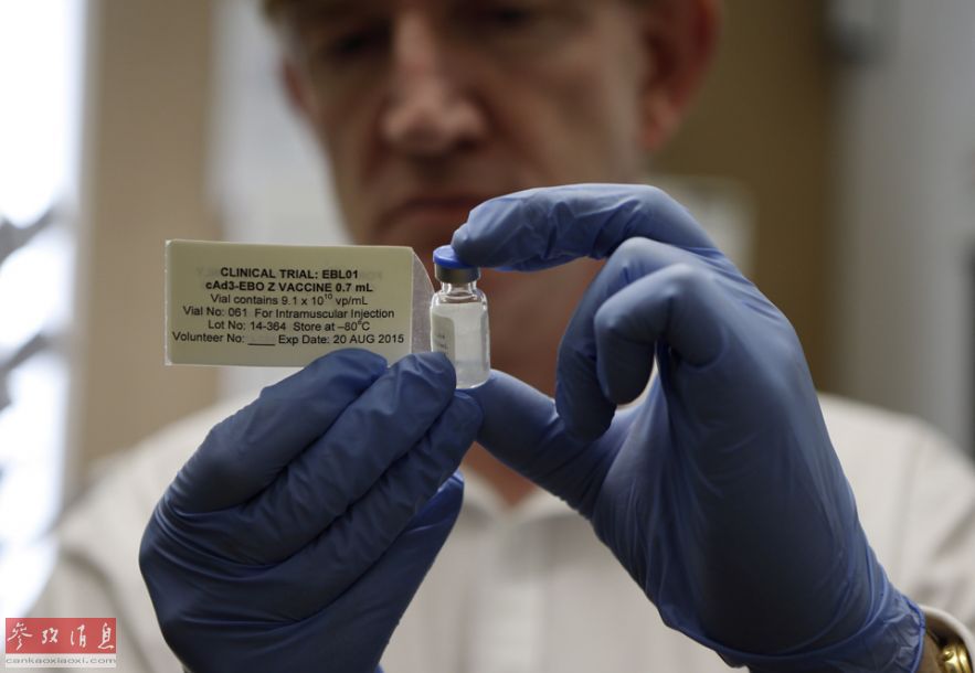 A researcher displays a vaccine for the Ebola virus developed jointly by the British company GlaxoSmithKline and the US National Institute of Health, Sept. 17, 2014. (Xinhua/AP)