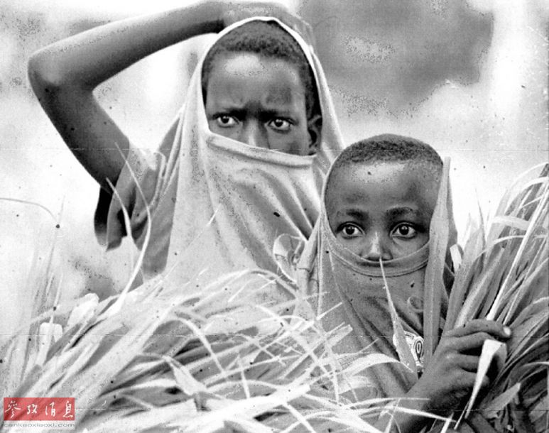 Two children wait for their relatives' bodies outside of Kikwit General Hospital, Zaire, May, 12, 1995. (Xinhua/AP)