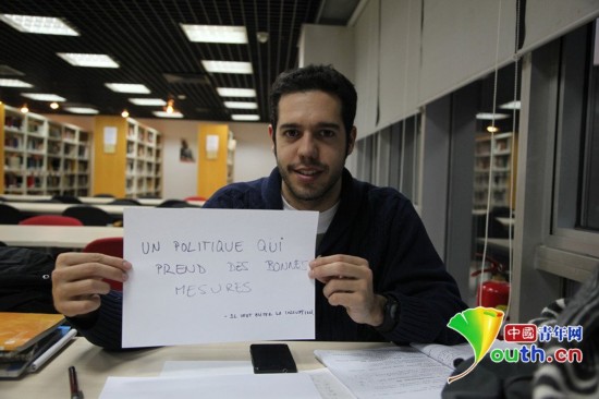 Jose, 27, comes from Spain. He has been in China for three months and is studying Chinese at Beijing Normal University. He remarked that Xi, a great reformer, is setting the right policies for China's development.(Photo/Youth.cn)