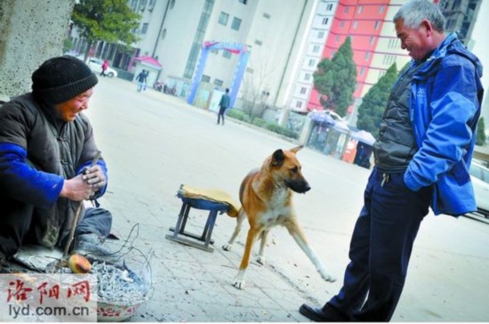 The two-year-old female dog pushes its handicapped owner on a wheelchair with its forelimbs when they encounter a steep climb in Luoyang, central China's Henan province. (Photo source:lyd.com.cn)