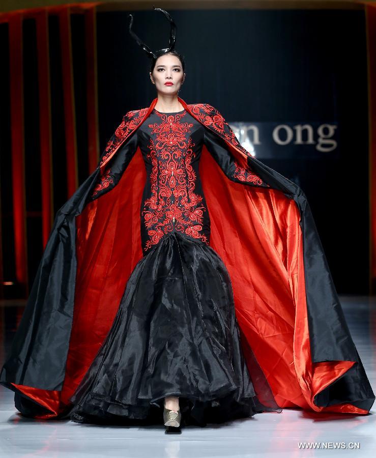 A model presents a creation by Malaysian designer Carven Ong at a wedding dress show during the China-ASEAN fashion week in Nanning, capital of southwest China's Guangxi Zhuang Autonomous Region, Jan. 3, 2015. (Xinhua/Chen Jianli)