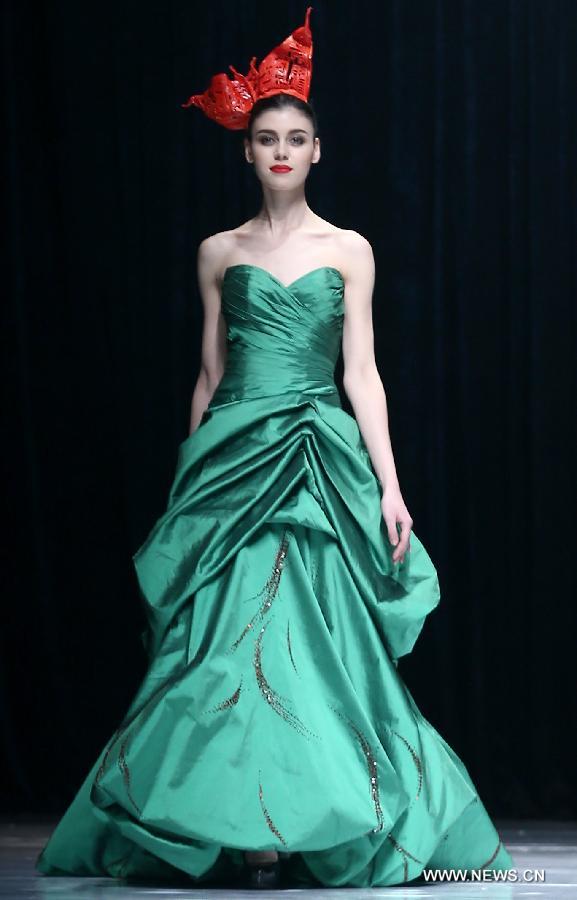 A model presents a creation by Malaysian designer Carven Ong at a wedding dress show during the China-ASEAN fashion week in Nanning, capital of southwest China's Guangxi Zhuang Autonomous Region, Jan. 3, 2015. (Xinhua/Chen Jianli)