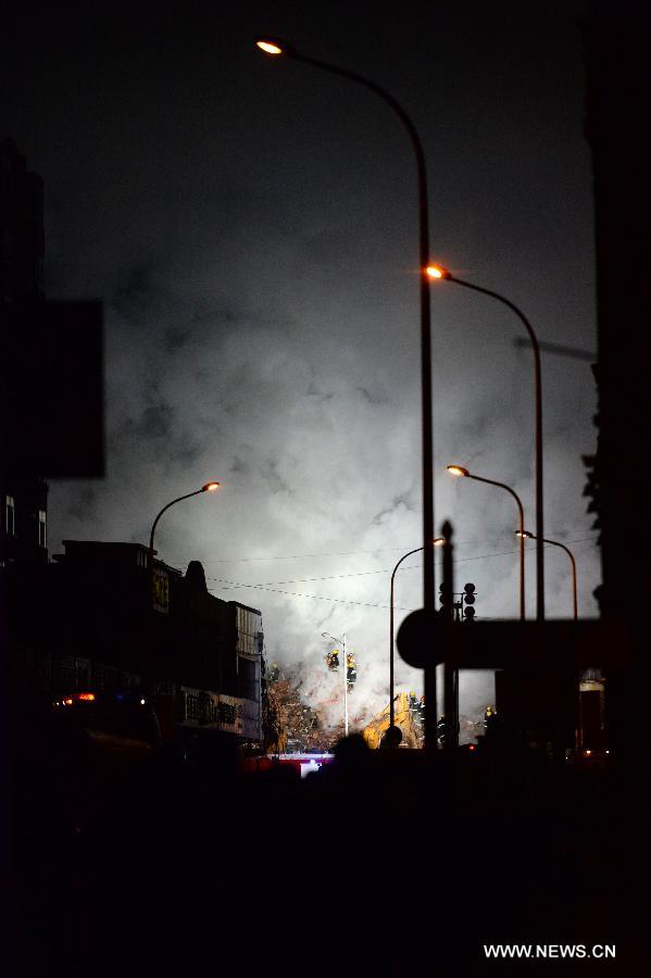 Smokes rise from a burnt warehouse in Harbin, capital of northeast China's Heilongjiang Province, Jan. 3, 2015. The death toll of the fire has climbed to five as the bodies of two missing firefighters have been found, local authorities said on Saturday. The fire broke out at about 1 p.m. on Friday afternoon on the warehouse, which is part of an 11-storey residential building. In total, five firefighters were killed and another 13 firefighters and a security guard were injured in the accident. (Xinhua/Wang Kai)