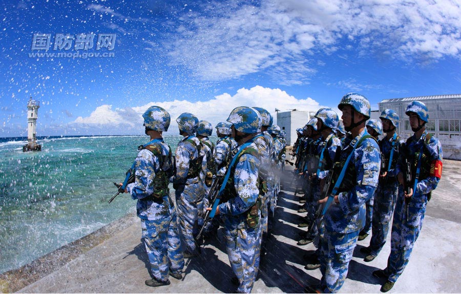 PLA Navy soldiers conduct training on the Nansha Islands. (Photo/mod.gov.cn)