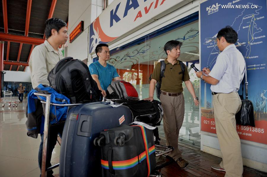 Mao Yanfeng (2nd R), an expert of the Civil Aviation Administration of China, talks to the media in Jakarta, Indonesia, Jan. 6, 2015. China on Tuesday sent aviation experts and a rescue vessel to join the Indonesian search operation for the black boxes of the ill-fated AirAsia Flight QZ8501. (Xinhua/He Changshan)