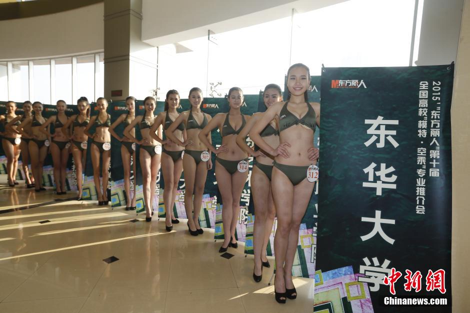 A promotional event for the major of model and flight attendant is held in Qingdao, east China’s Shandong province on Jan. 4, 2015. Over 60 colleges and universities came to the event to choose qualified applicants. Many beautiful girls who long to be models and flight attendants participated in the event. (Chinanews/Zhao Yuebo)