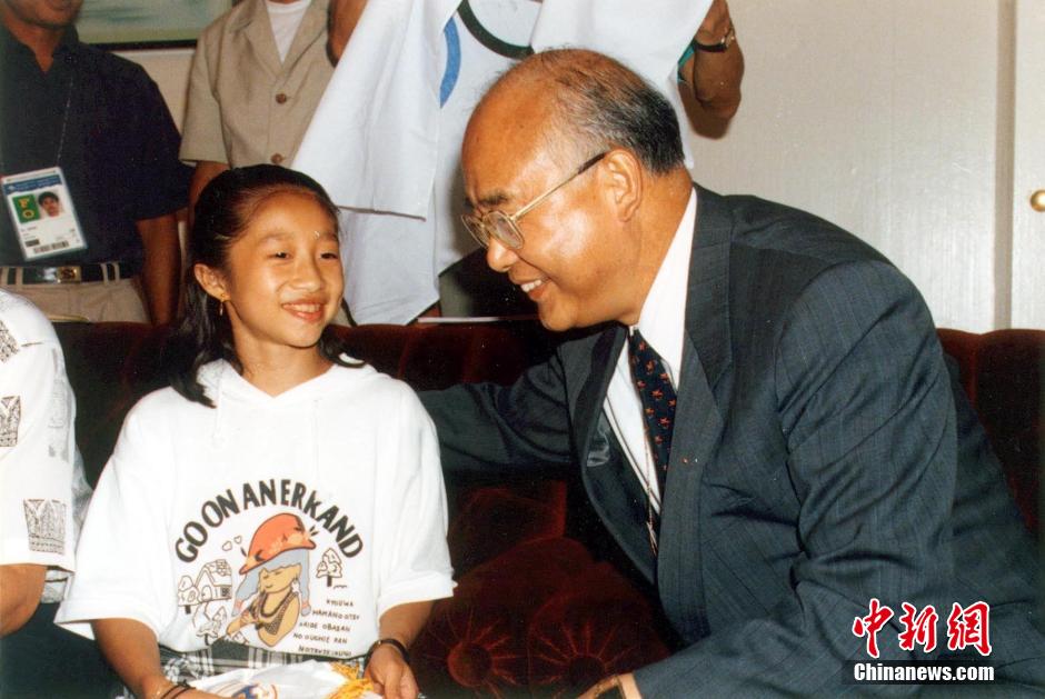 Jan. 1, 1992 - He Zhenliang (R), Vice President of the IOC congratulates Lu Li, winner of a gold medal for the Olympic women's gymnastics asymmetric bars. (CNS/Zhao Wei)