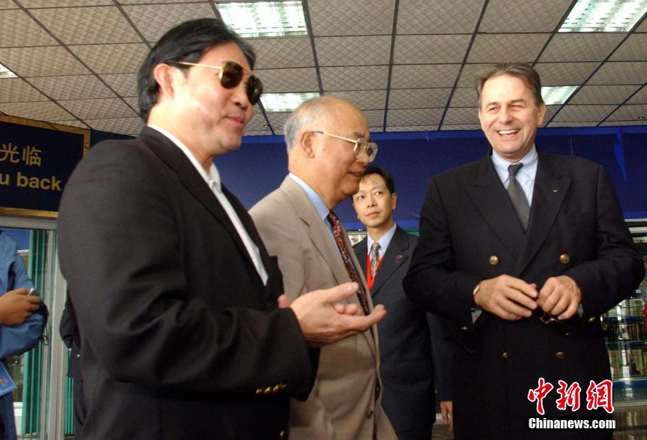 Nov. 11, 2001 - Jacques Rogge (right), President of the IOC, arrives at Panyu Nansha Port by boat from Hong Kong with fellow IOC members He Zhenliang (center) and Timothy Fok (left). (CNS/Hong Shaokui)