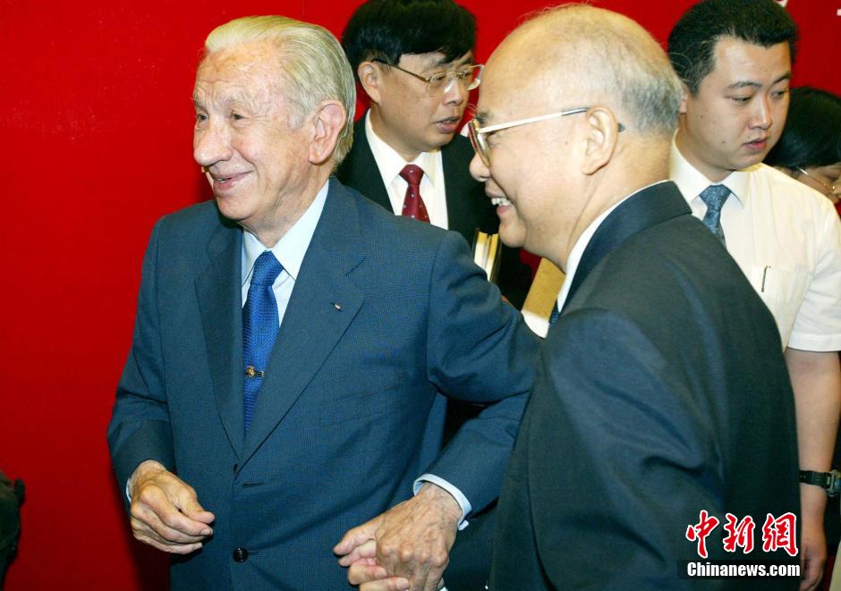 July 8, 2003 - The launch of the Chinese edition of Memories of The Olympics written by Juan Antonio Samaranch, Honorary President of the IOC, was held at the Great Hall in Beijing. He Zhenliang, executive member of IOC and Honorary President of the IOC of China, attended the event and sent his congratulations. (CNS/Mao Jianjun)